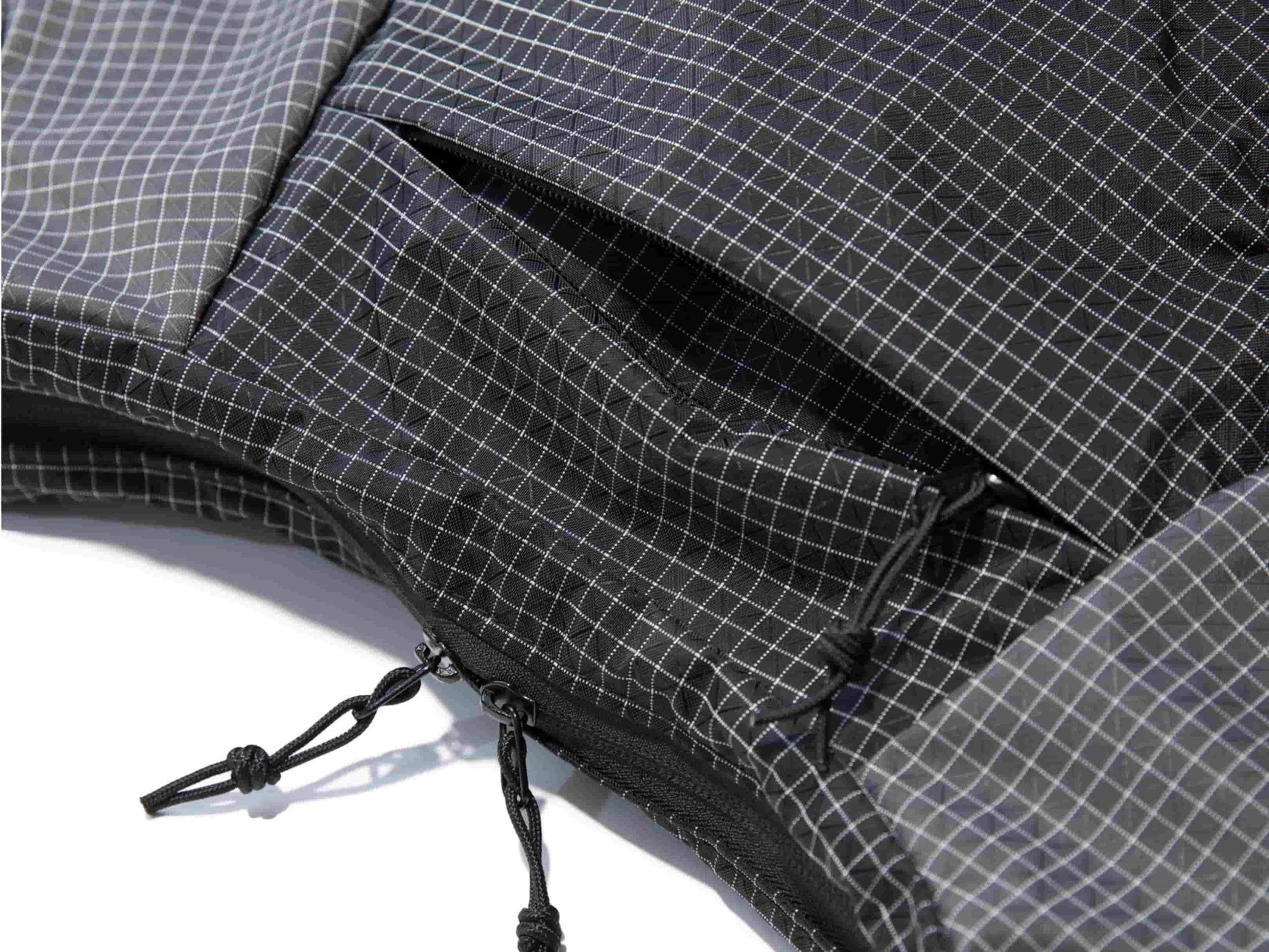 Gridstop UHMWPE / YKK zippers / Polyamide webbing / Aluminum components / Plastic cord locks / Paracord